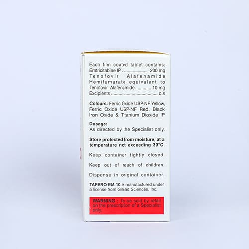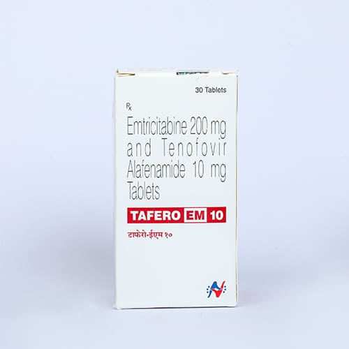 Tafero EM 10 Tablet contains Tenofovir Alafenamide and Emtricitabine, which belong to the NtRTI and NRTI classes. These drugs block reverse transcriptase, an enzyme needed by HIV to replicate. This reduces the viral load and helps strengthen the immune system.